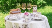 Коллекция Monplaisir объединяет французский шарм и восточную эстетику. В изысканном декоре угадываются мотивы шинуазри: дивные цветы и птицы, исполненные в аметистовых или зеленых оттенках.